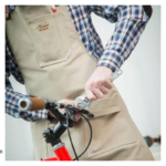 Žepi za pametni telefon in kuharske potrebščine, z zanko za obešanje kuhinjske krpe.