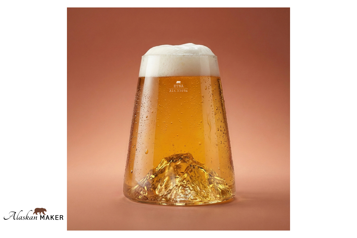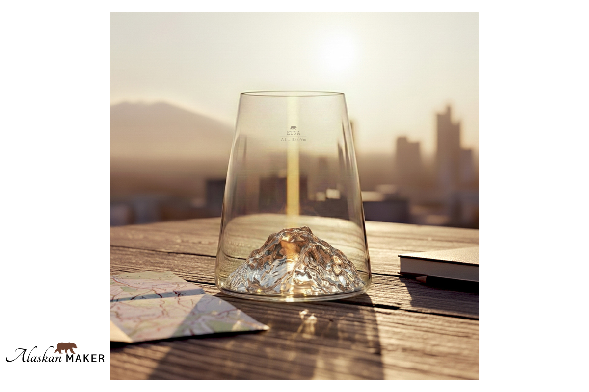 Alaskan MAKER AMTOPO-VD-V – steklen kozarec za pijačo na vrhu Etne.