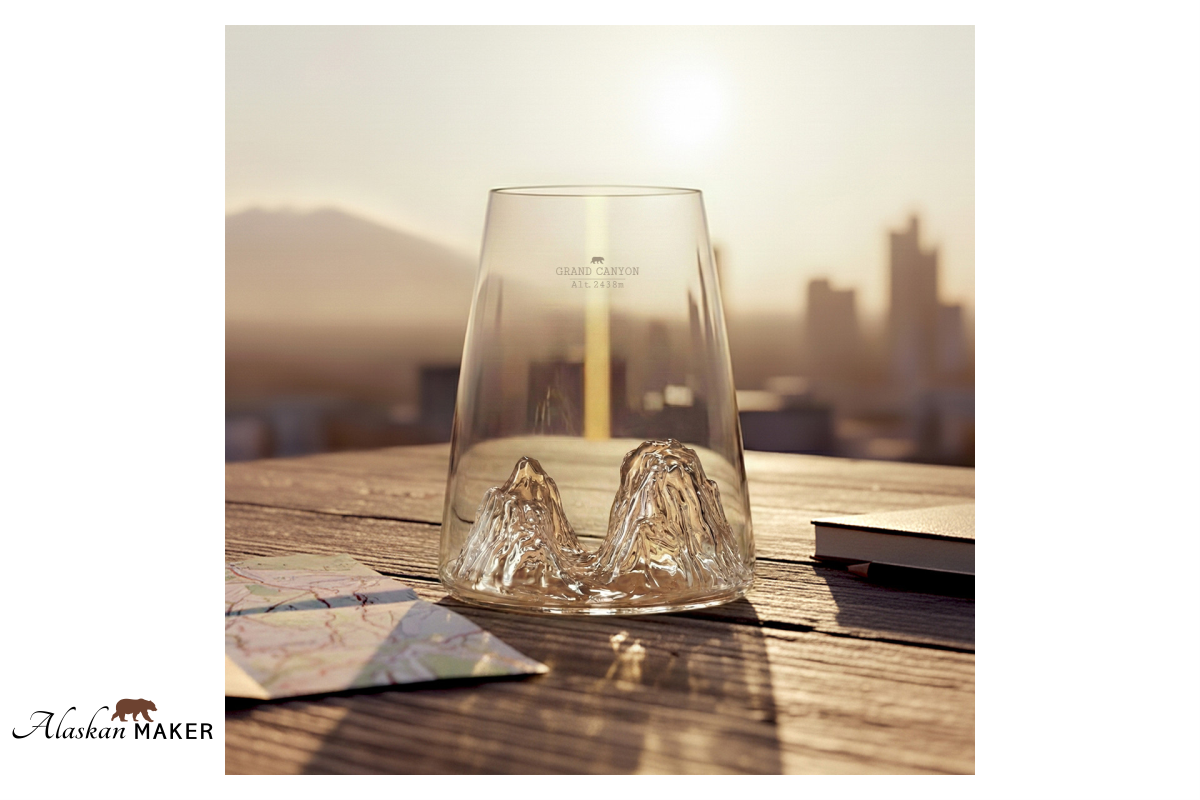 Alaskan MAKER AMTOPO-VD-G – steklen kozarec za pijačo na vrhu Grand Canyon-a.