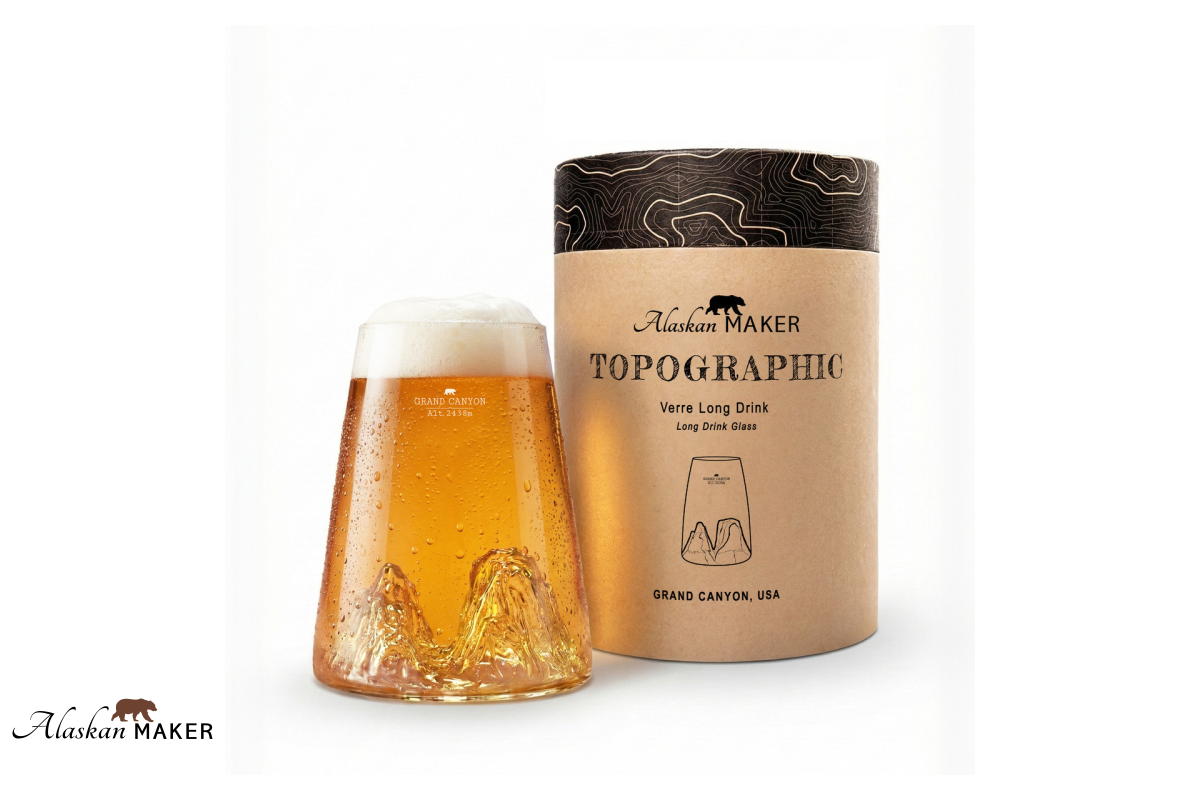 Alaskan MAKER steklen kozarec za pijačo s topografskim dnom