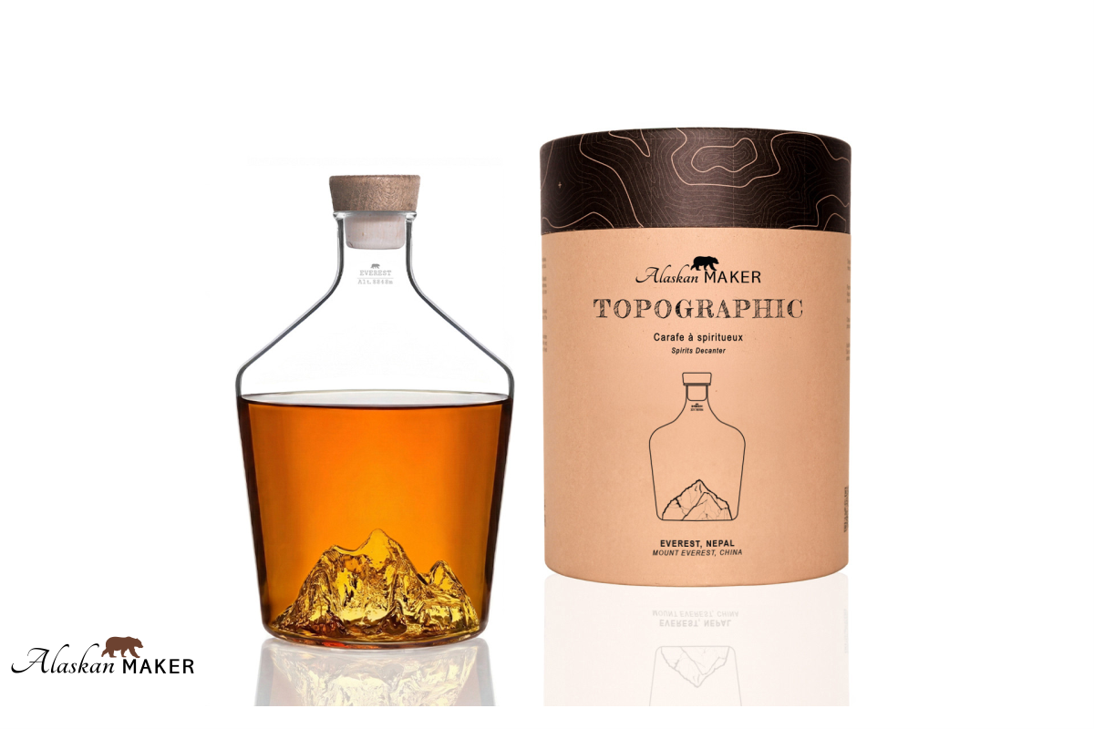 Alaskan MAKER steklenica za žganje s topografijo gore Everest