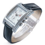 Ročna moška ura Grand Tourer škotske blagovne znamke Dalvey z vodotesnim ohišjem iz poliranega nerjavečega jekla (do 30 m) ter švicarskim kvarčnim mehanizmom za prikazovanje časa, datuma, dneva v tednu ter merjenjem časa v sekundah in minutah.