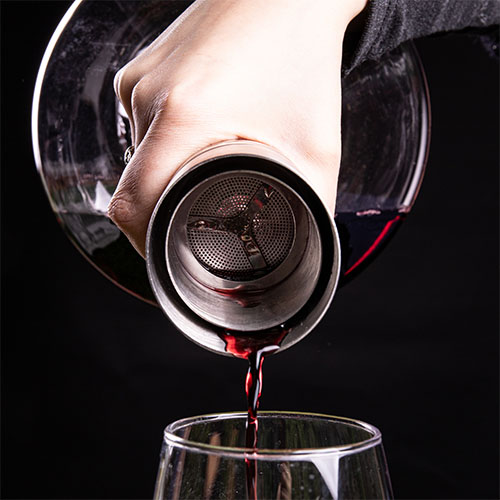 Pred serviranjem je pomembno, da vino filtrirate. Ta korak zagotavlja kristalno čisto tekočino. Filter v zamašku zadrži morebitne usedline v steklenici, kar zagotavlja vrhunsko izkušnjo samega okusa.