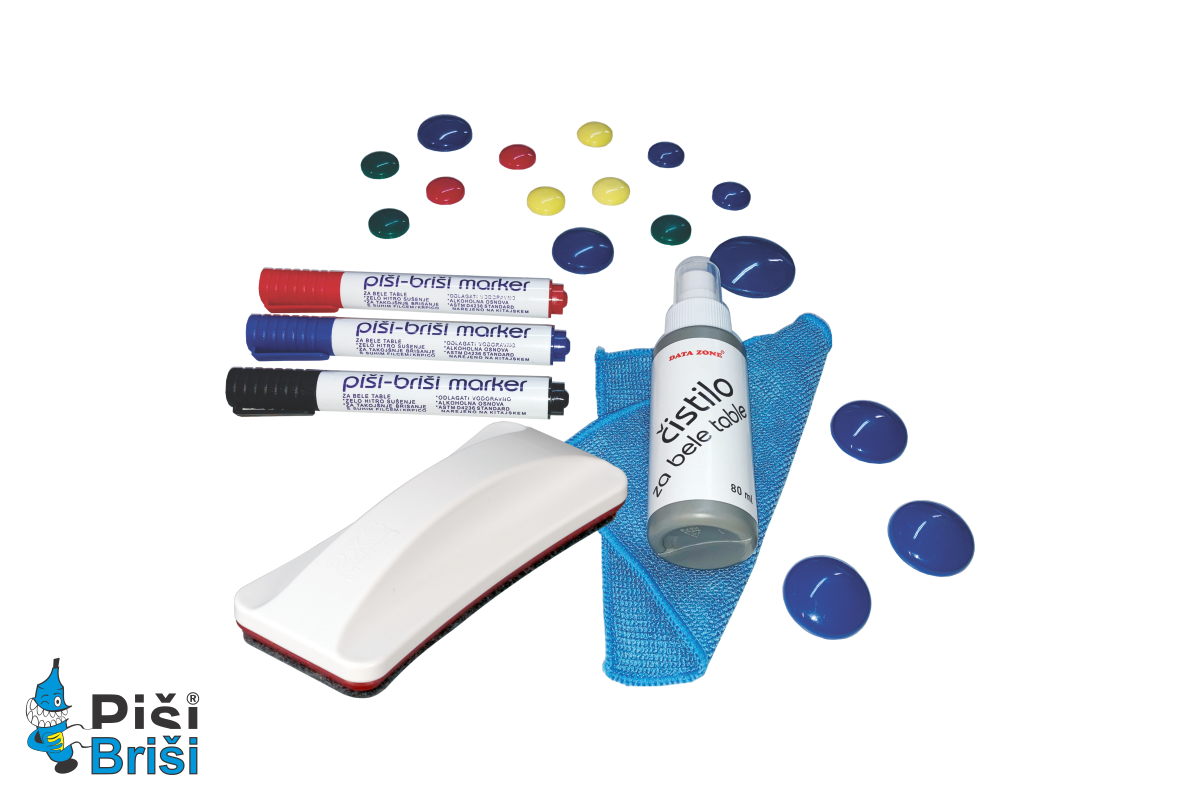 Uporaba Piši-Briši markerjev za hitro in enostavno (suho) brisanje z magnetno gobico,