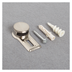 stekleno magnetno tablo, 20 cm aluminijasto poličko, magnetno gobico, konzole, vijake in vložke za stensko montažo. Za suhomontažne stene potrebujete drugačne stenske vložke, ki zmanjšujejo točkovni pritisk na (Knauf) steno.
