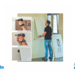 2. korak: izvrtanje 4-ih lukenj v steno, vstavitev stenskih vložkov in privijačenje magnetnih konzol v steno,