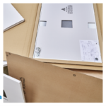 - ENOSTAVNA MONTAŽA – tabla ima priloženo kartonasto šablono za ležečo ali pokončno montažo, magnetne konzole pa omogočajo varno in enostavno nasaditev table na zid.