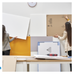 pritrjevanje papirja na pisalno površino z uporabo magnetkov.