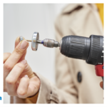 2. korak: izvrtanje lukenj v steno, vstavitev stenskih vložkov in privijačenje magnetnih konzol,