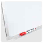 Tabla ima prilagodljivi FlipChart kljukici za blok papirja in poličko za markerje, v komplet pa smo za vas dodali še blok papirja (šifra B04), 3 Piši-Briši markerje (črn, moder in rdeč, šifra WBM-138A3) in mikrovlakensko krpico za čiščenje (šifra WBC-CPo1).