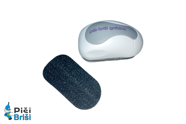 V kompletu je pet zamenljivih blazinic iz filca, kadar se zapacajo (brisanje table se občutno poslabša), jih lahko ročno operete z milnico.
