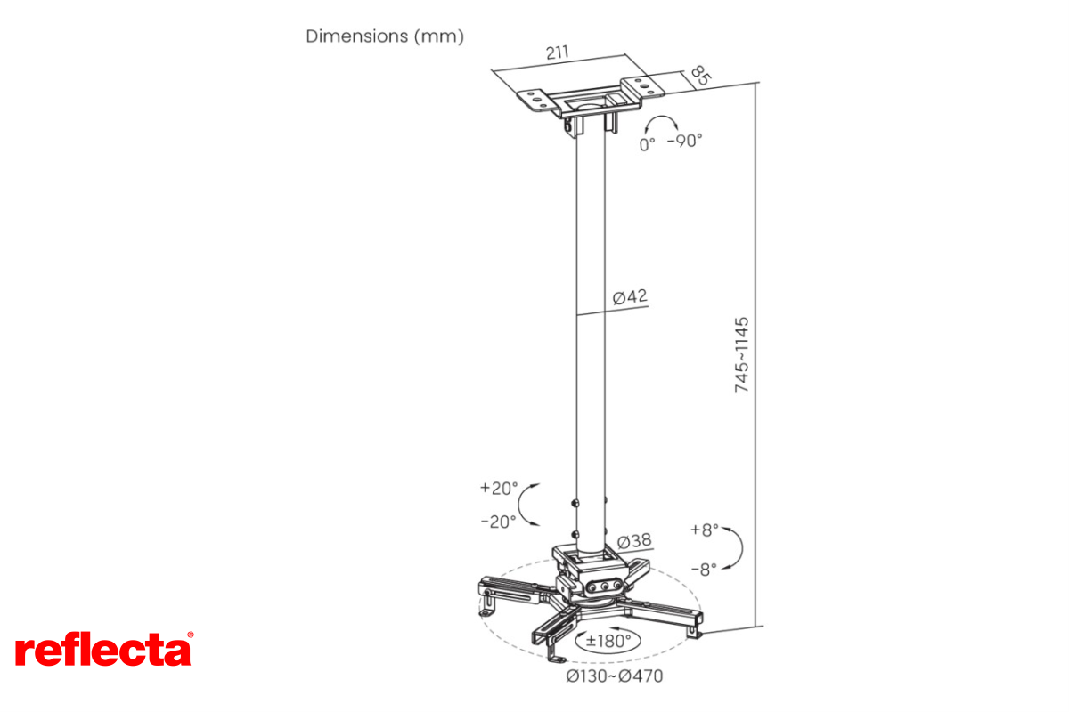 reflecta 23069 – VEXUS II univerzalni masnardni nosilec nemške blagovne znamke REFLECTA je namenjen stensko-stropni montaži video projektorja, idealno za poševni strop.