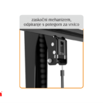 Nastavljiv naklon nosilca omogoča pritrditev tudi pod strop ali nižje od linije oči. V škatli z navodili in montažnim priborom.