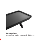 Največja obtežitev 6 kg, iz črne plastike z varnostnim robom, TV zaslon naj ima debelino vsaj 18 mm, oddaljenost od stene pa naj bo vsaj 127 mm, kolikor je globina same poličke.
