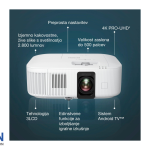 EPSON projektor za HIŠNI KINO EH-TW6250 ima sliko z visoko ločljivostjo in veliko detajli za impresivno projekcijo s povezljivostjo preko Android TV predvajalnika za pretočni prenos predstavnosti (ELPAP12 vmesnik).