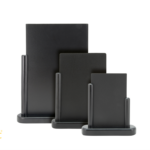 NAMIZNE KREDNE TABLE so stroškovno učinkovite, ekološke in imajo posebno osebno noto komunikacije. Idealne so kot orodje za prodajo podjetjem, ki z uporabo kredamarkerjev, prilagodijo vsako napisano besedilo ali narisano sliko. Pisanje na vsako črno tablo je izjemno enostavno in potem ko je sporočilo že zastarelo, jo preprosto obrišite in začnete znova. Največji učinek se doseže, ko se tablo postavi na posamezne izpostavljene jedilne mize, police ali pri blagajni. Idealen pripomoček za spodbujanje akcije, navodila ali storitev posamezne informacije.