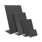 Idealne so kot orodje za prodajo podjetjem, ki z uporabo kredamarkerjev, prilagodijo vsako napisano besedilo ali narisano sliko. Pisanje na vsako črno tablo je izjemno enostavno in potem ko je sporočilo že zastarelo, jo preprosto obrišite in začnete znova. Največji učinek se doseže, ko se tablo postavi na posamezne izpostavljene jedilne mize, police ali pri blagajni. Idealen pripomoček za spodbujanje akcije, navodila ali storitev posamezne informacije.