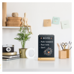 Securit FBTNOTES – Silhouette NAMIZNA KREDNA TABLA – idealne za na mizo, pult ali polico. Kompakten lesen lakiran podstavek varno drži dvostransko črno pisalno površino. Držalo za pisalo je v lesenem postavku. Notranja ali zunanja uporaba, v kompletu s KREDAMARKER-jem. Trdi eko kavčukov les, prevlečen s plastmi kakovostnega laka odpornega na različne vremenske pojave.