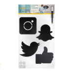 ČRNO KREDNO TABLO s simboli za različna socialna omrežja, v kompletu s KREDAMARKER-jem in trakovi za stensko montažo.