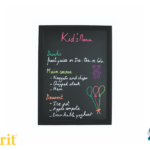 S črno gladko površino iz melamina je primerna samo za uporabo markerjev s tekočo kredo, ki se jih po uporabi briše z mokro mikrovlakensko krpico. Okvir je iz posebnega trdega lesa (spredaj konturiran, na zadnji strani raven), zato je odporen na vse vremenske razmere, skupaj s pisalno povšrino pa sta odporna na praske in UV žarke, tako na sprenji, kot tudi zadnji strani. Postavitev table je pokončna ali ležeča.