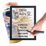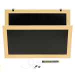 Akrilno kredno tablo z okvirjem črne barve, pritrdilni kavelj, žica in črn ter beli kredamarker.