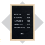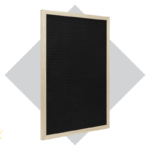 Kakovosten (lakiran) lesen okvir, enostavna montaža in črna površina iz filca za pripenjanje 244 priloženih črk, številk in simbolov. Tabla je lahko na steni, visi s stropa ali enostavno postavljena pri oknu za notranjo uporabo. Možnosti je nešteto.