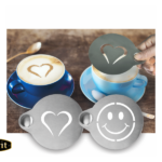 Securit STNSSCO – ŠABLONA za DOBRO VOLJO na KAVI nizozemske blagovne znamke Securit® je namenjena projiciranju pozitivne energije s potresanjem kakava preko nje po mlečni peni toplega napitka.