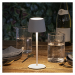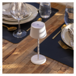 Vodoodporna, mini namizna svetilka modernega dizajna z vgrajeno LED diodo in baterijo.