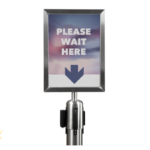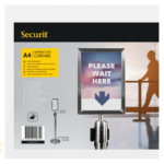 Securit® Retractable reklamni A4 okvir za pregradne stebričke z izvlečnim trakom.