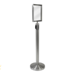 Securit RSSIGNA4PS – PREGRADNI reklamni okvir za A4 format papirja Retractable nizozemske blagovne znamke Securit® je namenjen nataknitvi na STEBRIČEK z IZVLEČNIM TRAKOM za usmerjanje ali ustavljanje ljudi pri prihodu v prostor. Brušeno nerjaveče jeklo je odporno na vse vremenske vplive, prav tako tudi zaščitna protircalna folija.