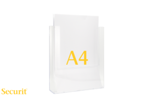 Securit REKLAMNI DISPLEJ z okvirjem sive barve ter priseski za steklo. Vstavljanje A3 ali manjših reklamnih letakov, fleksibilen ter odporen na UV svetlobo.