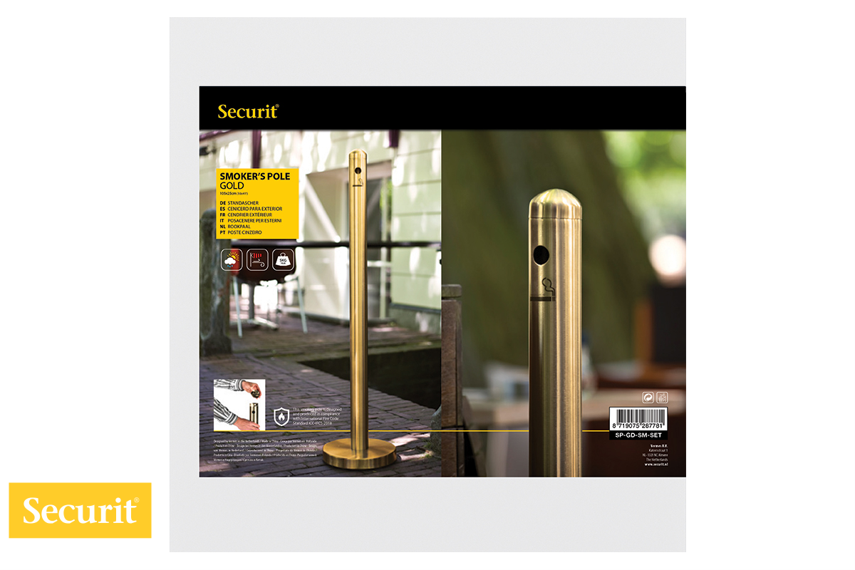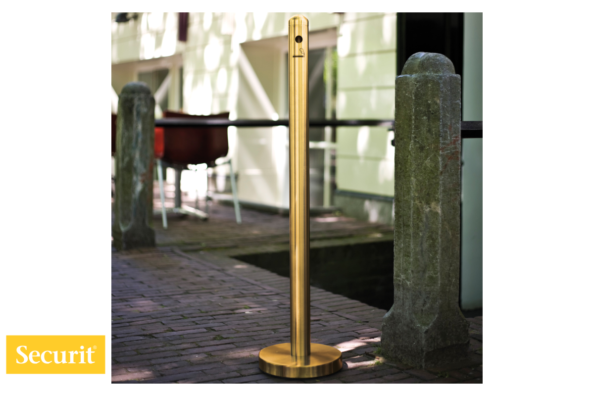 Securit SPGDSMSET – Protipožaren vsevremenski PEPELNIK v stebričku nizozemske blagovne znamke Securit® je namenjen zunanjemu kadilskemu prostoru.